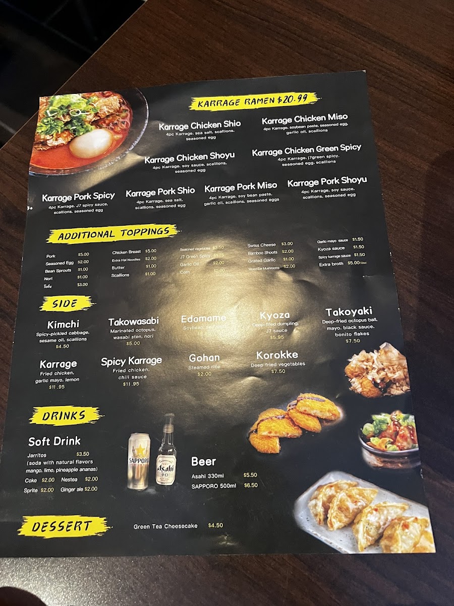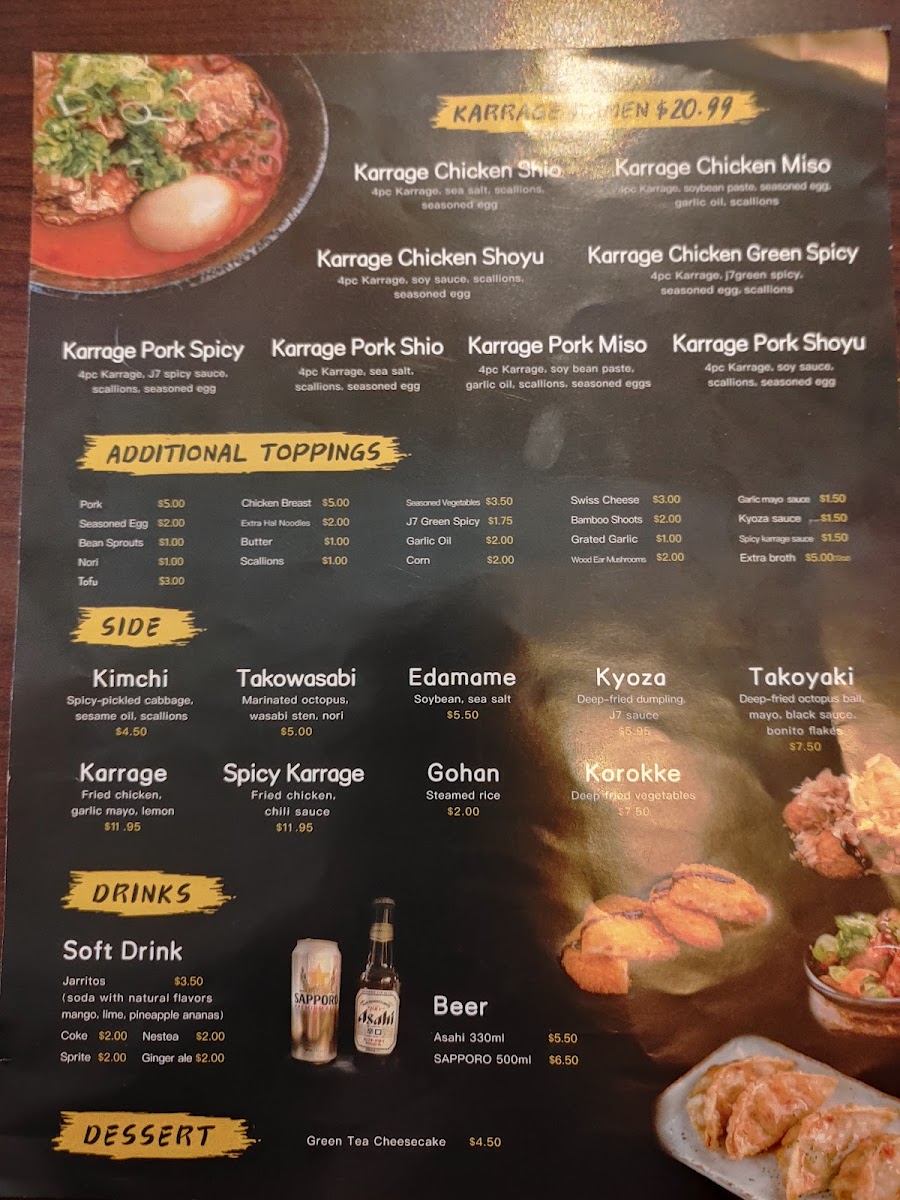 J7 Ramen Menu